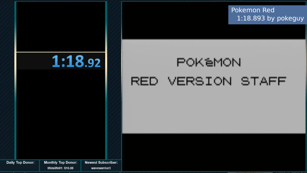 - Since the creation of this post, the Pokemon Blue Any% WR has been improved by Grogir with the time of 1m 18s 793ms.